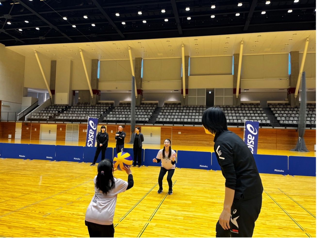 レシーブやトスは、最初はうまくいかず戸惑う場面も見られましたが、大山さんのアドバイスを受けながら少しずつコツをつかみ、次第にボールがつながっていきました。
